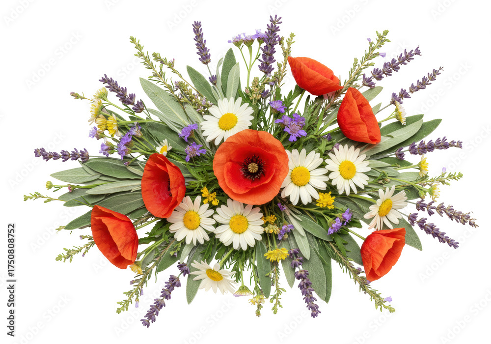 Fototapeta Isolated arrangement featuring flowers, poppies, and lavender against no backgro