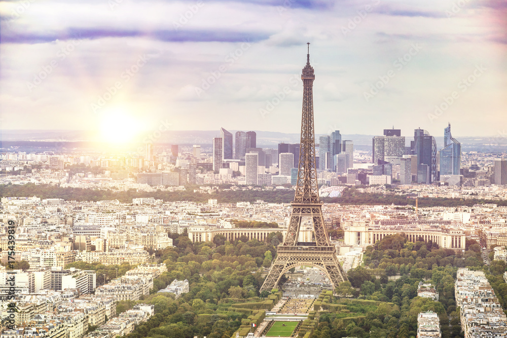 Fototapeta Evening Eiffel tower and Paris city view form Triumph Arc