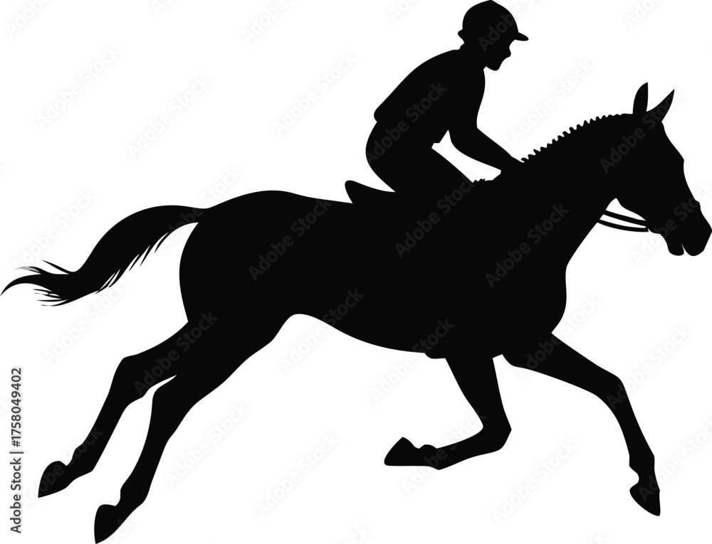 Fototapeta Silhouette of a horse and rider in a dynamic galloping pose