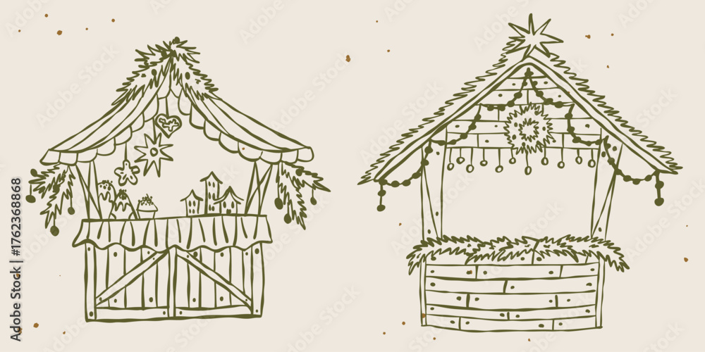 Fototapeta Whimsical vintage Christmas market stalls set