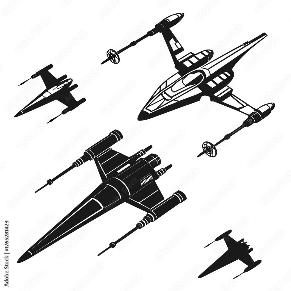 Fototapeta Black silhouette of starfighter spaceships in flight