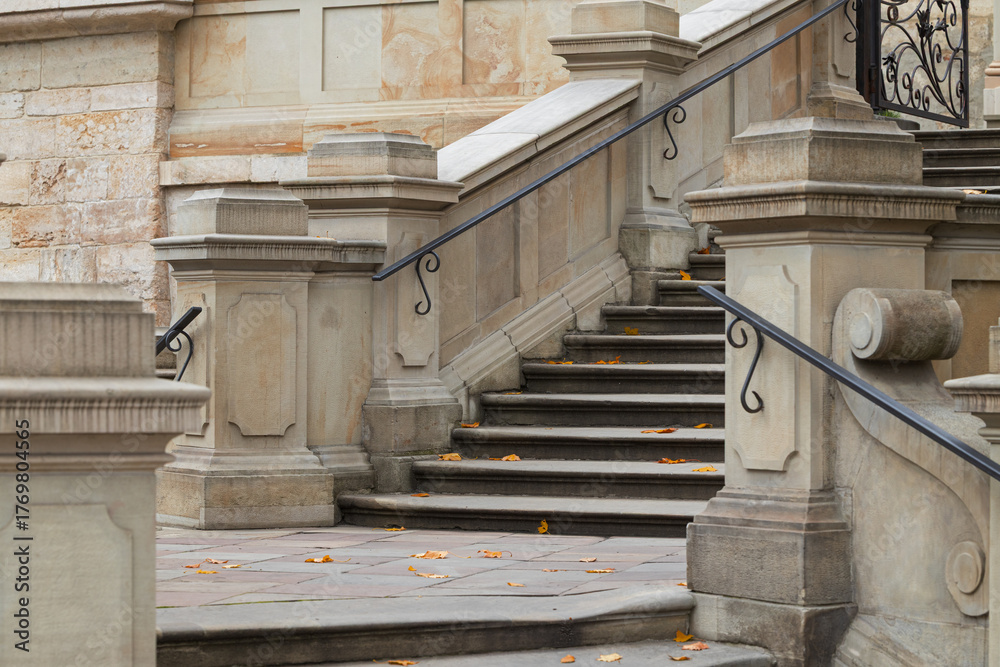 Fototapeta old school urban cathedral architectural patterns of ancient marble stairs and h