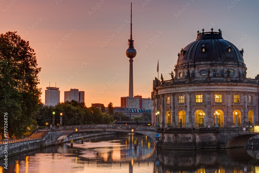 Fototapeta Sunrise at the Bode-Museum in Berlin with the Television Tower in the back