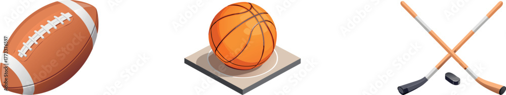 Fototapeta Set of Sports Icons - Football, Basketball, and Hockey Equipment Vector