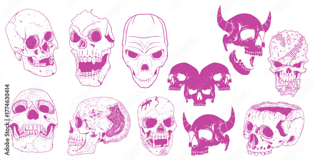 Fototapeta Skull Collection: A collection of various skull designs in shades, creating a visually striking display of gothic aesthetic, perfect for Halloween or alternative themed projects