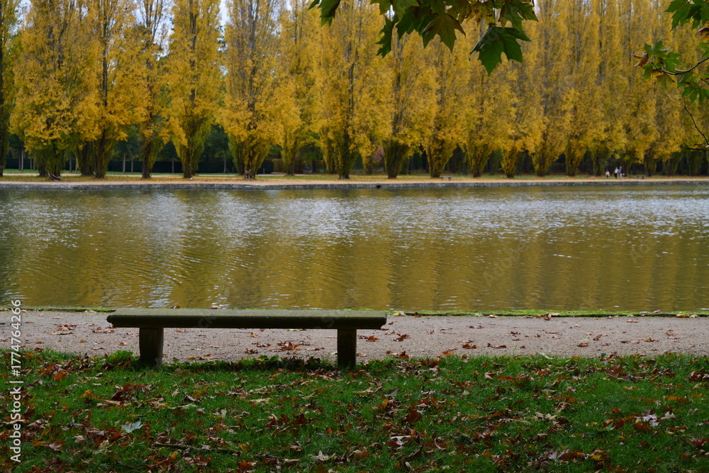 Fototapeta A l'automne le banc au bord du canal