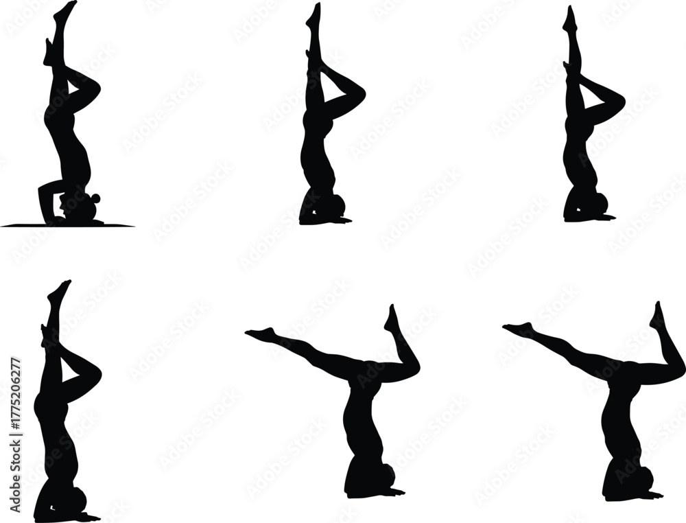 Fototapeta Yoga headstand pose variations, fitness balance exercise, meditation practice, w