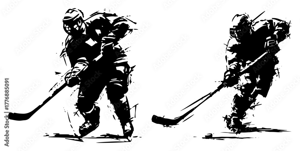 Fototapeta Dynamic Ice Hockey Player Vector Silhouette Set Grunge Sports Illustration