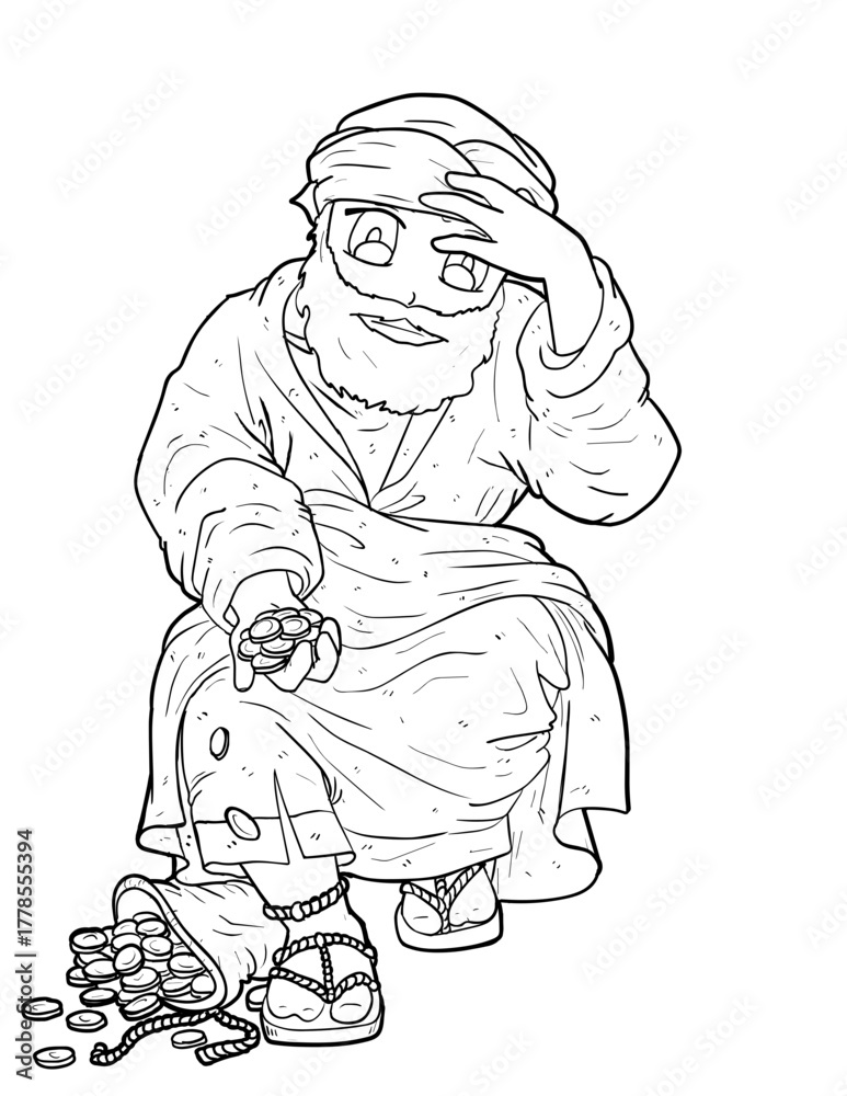 Fototapeta Judas Iscariot with 30 Pieces of Silver Coloring Page