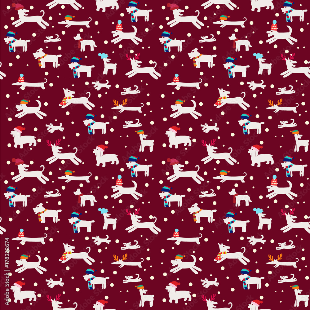 Fototapeta Christmas pattern with funny white dogs