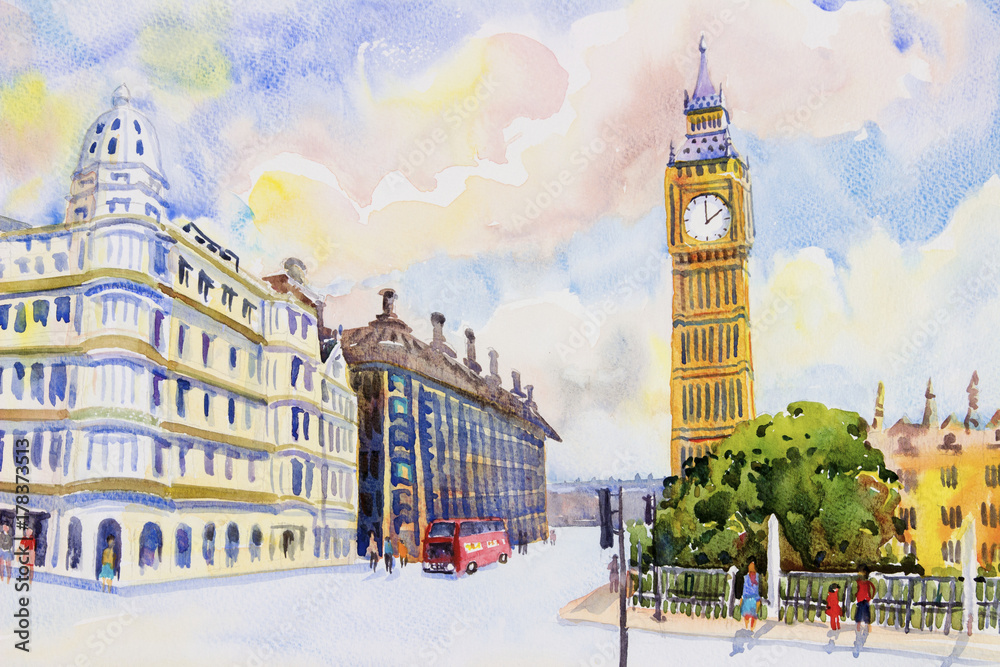 Fototapeta Street view in London Red Bus at England.