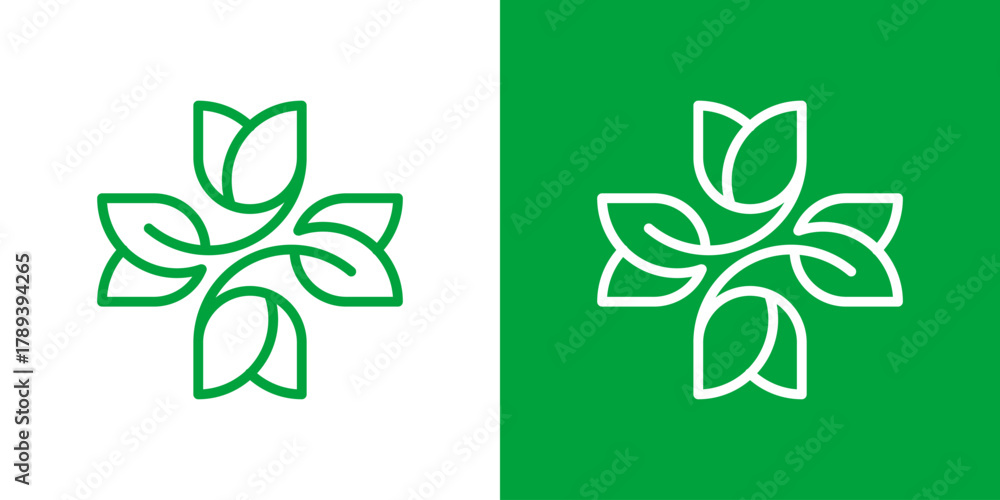 Fototapeta Cross Leaf Medical Logo. Health Leaf Simple Line Logo.