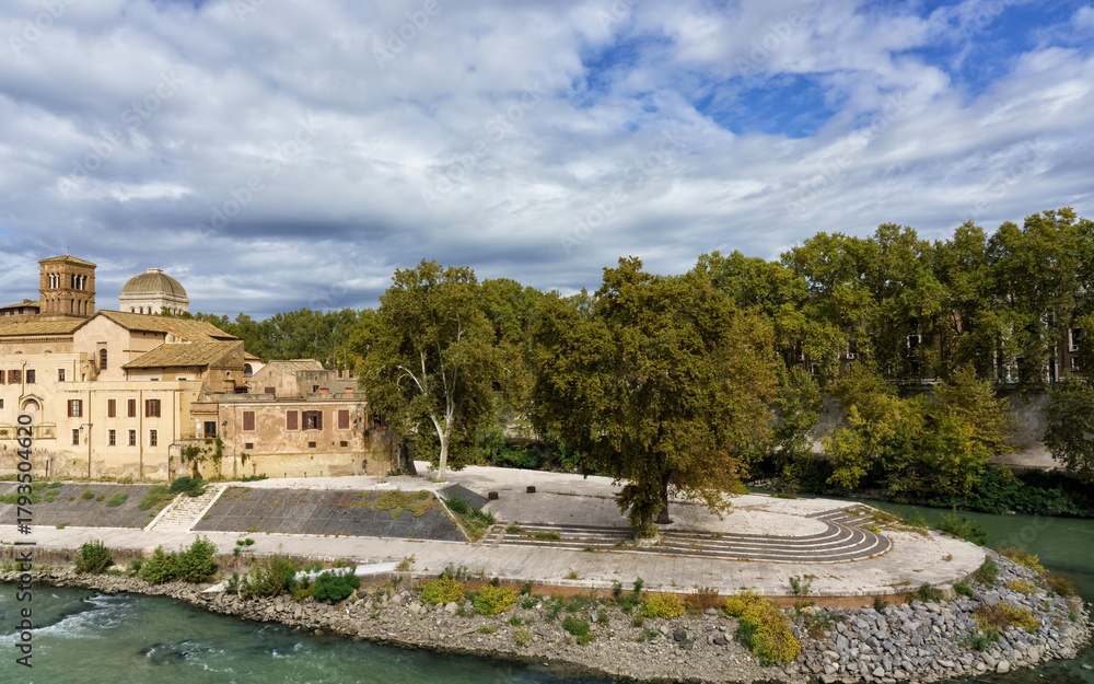 Fototapeta Rome, Italy, boat-shaped Tiber Island (Insula Tiberina)