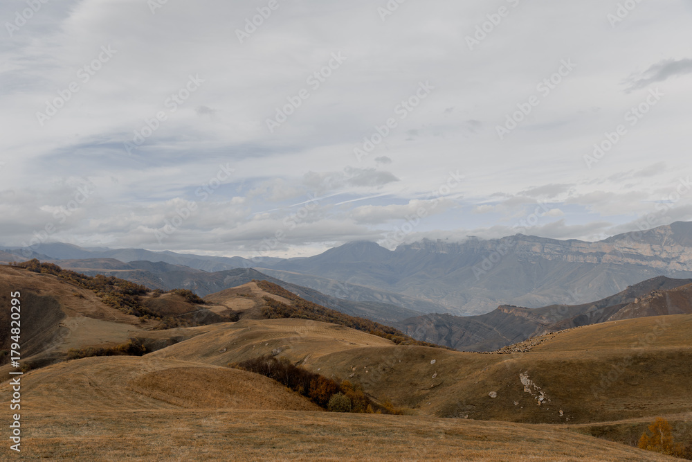 Fototapeta Panoramic view of the mountainous landscape in Kabardino-Balkaria