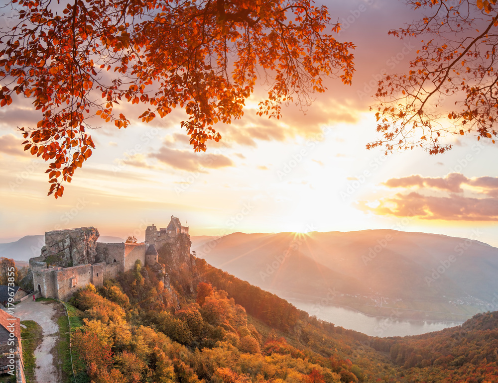 Fototapeta Aggstein castle with autumn forest in Wachau, Austria