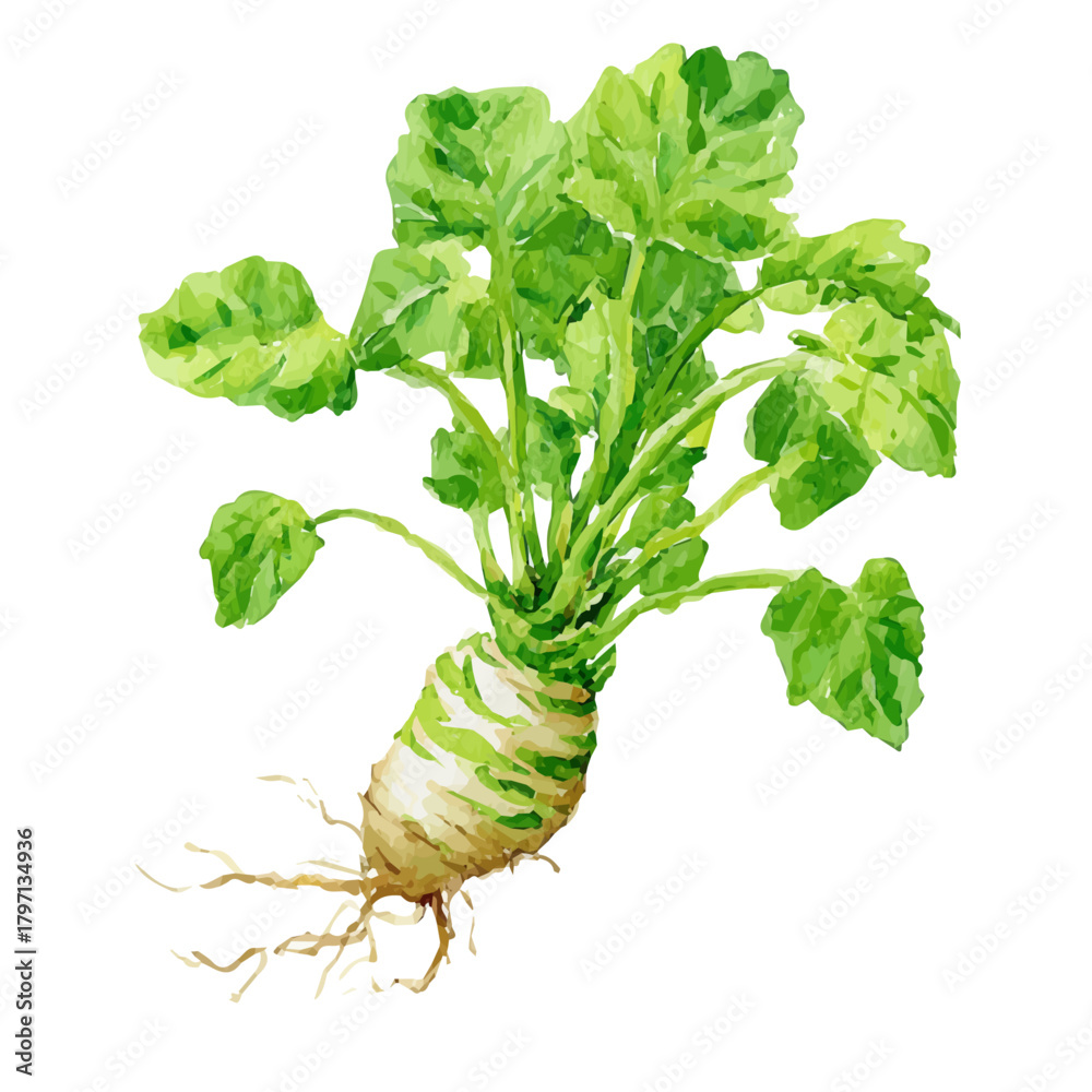 Fototapeta A watercolor painting wasabi root from a front angle painting illustration isola