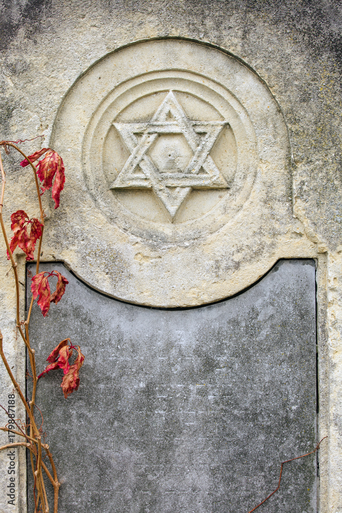 Fototapeta Jewish Headstone flowers stone symbol embem background cemetery old granit marbl