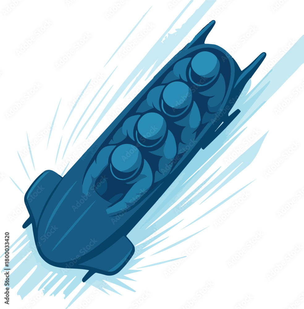 Fototapeta Four person bobsled team in dark blue racing down an icy track