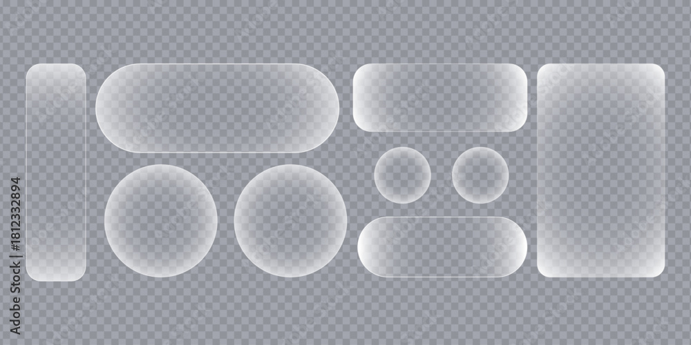 Fototapeta Collection of liquid glass button interface translucent rounded shapes with subt