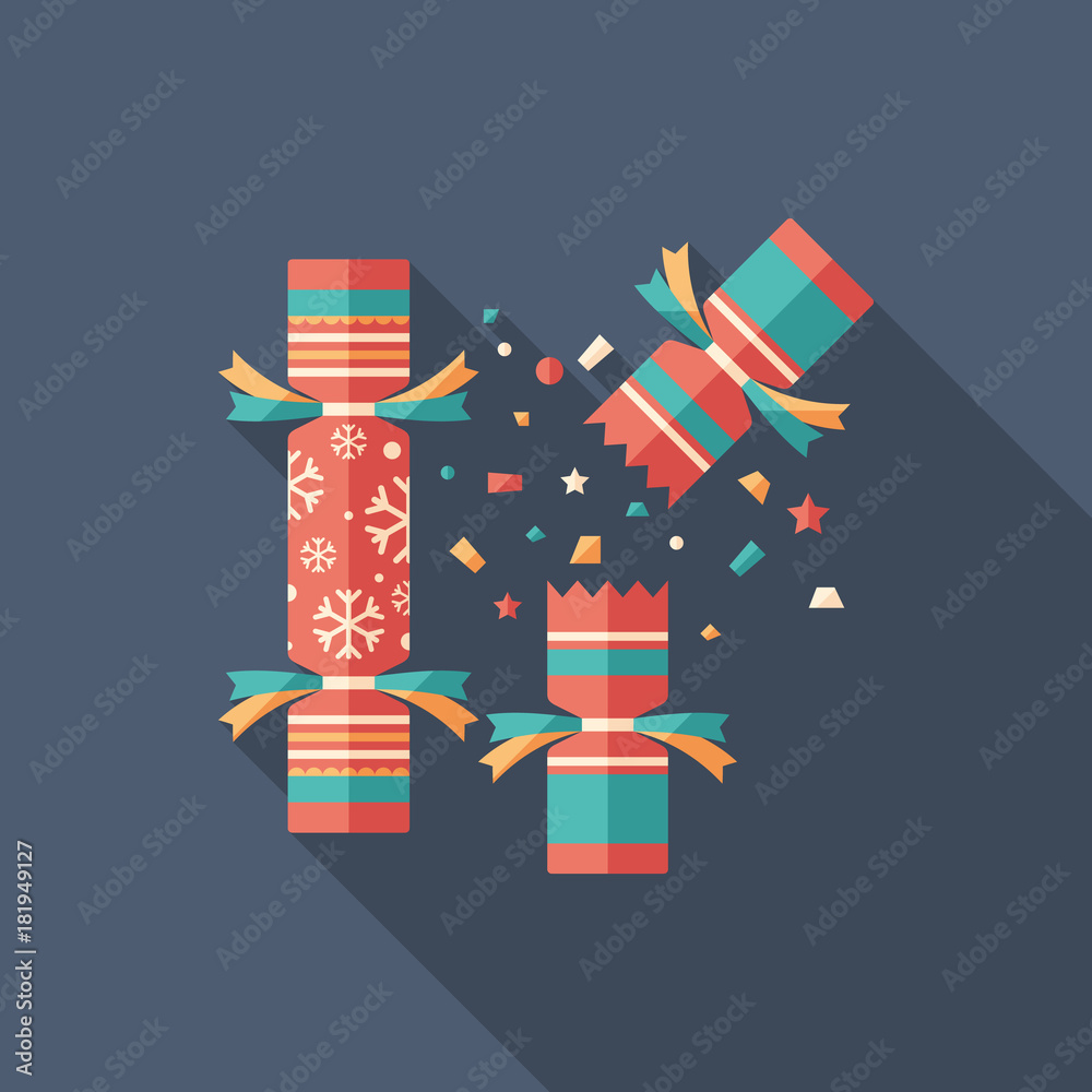 Fototapeta Christmas cracker flat square icon with long shadows.