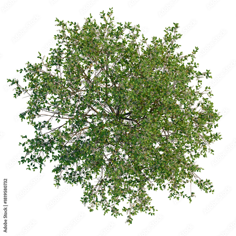 Fototapeta Prunus padus tree plan, top view, cutout 4k, transparent background, Top view of
