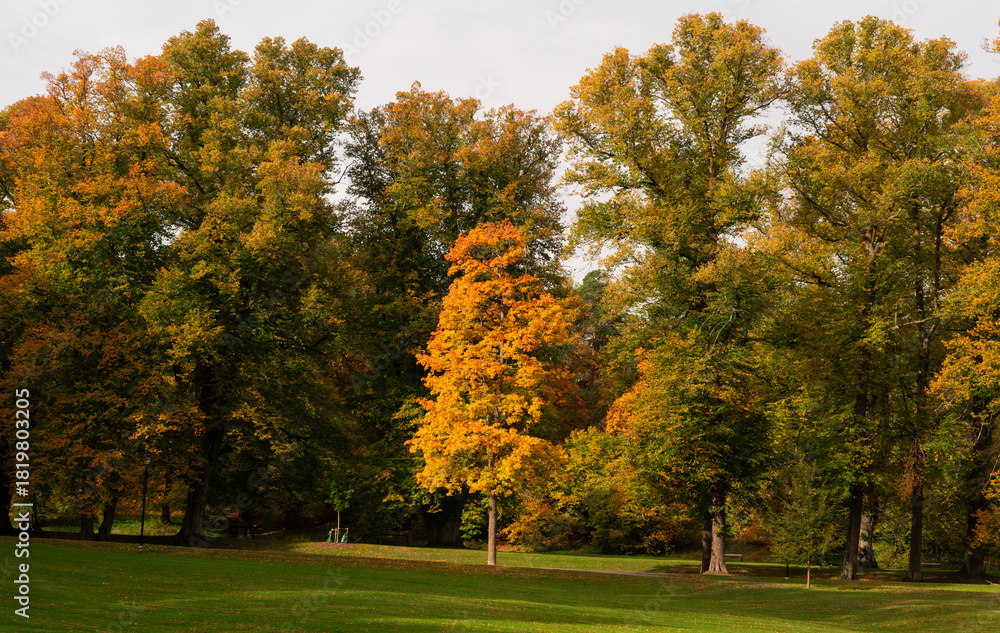 Fototapeta Autumn forest landscape in Hagaparken, a city park in Stockholm, Sweden