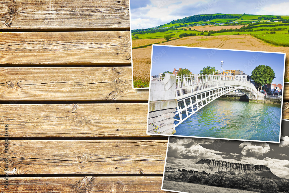 Fototapeta Irish landscapes - postards concept on colored wooden background