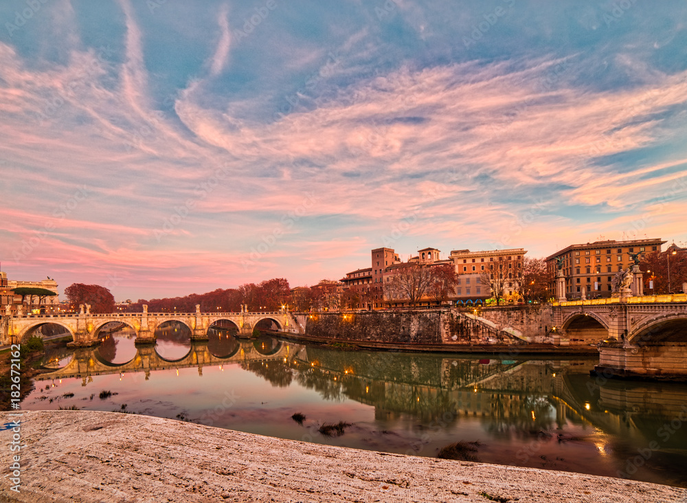 Fototapeta sunset on bridges of Rome