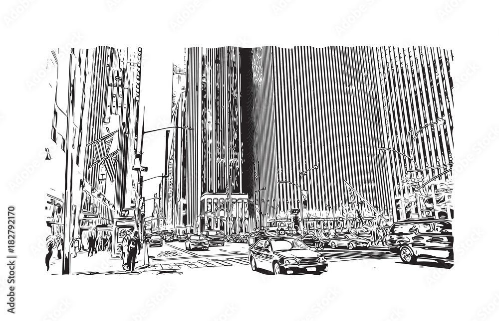 Fototapeta Sketch illustration of The City of New York, often called New York City, simply New York or NYC, is the most populous city in the United States of America in vector