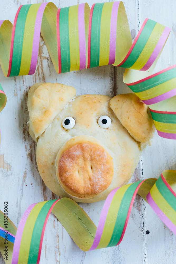 Fototapeta Glückschwein Quarkbrötchen