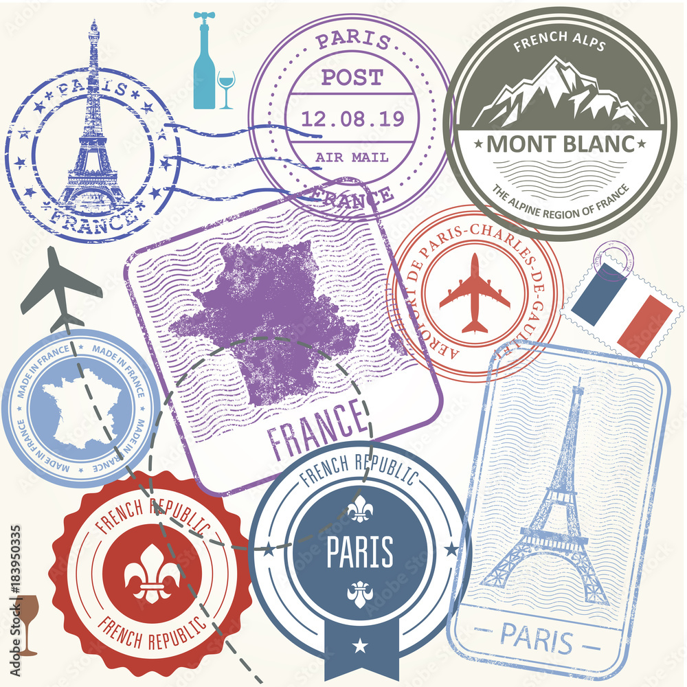 Fototapeta Travel stamps set - France and Paris journey symbols
