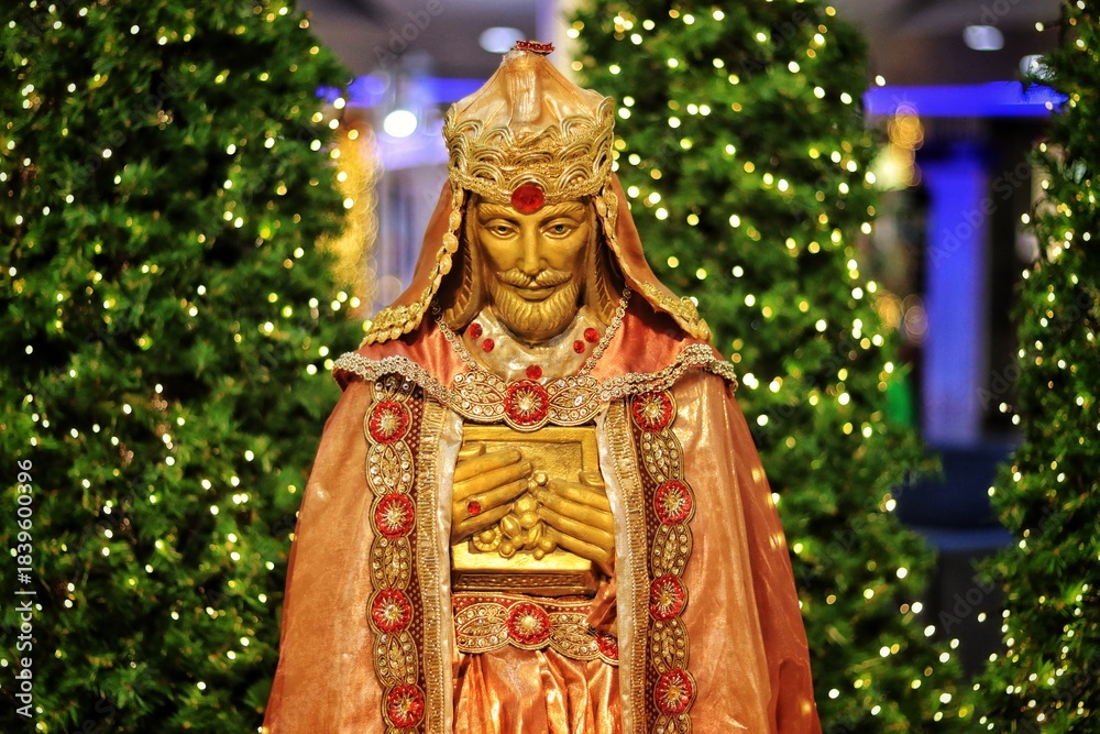 Fototapeta Editorial photo from San Fernando, Trinidad, dated December 8, 2025 of a close-up shot of a statue of one of the Three Wise Men or Magi from the Nativity story