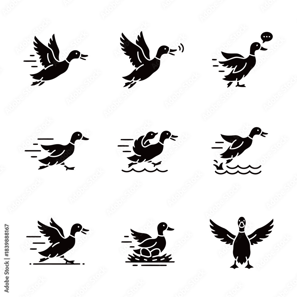 Fototapeta Dynamic Duck Icons Collection Flying Quacking Running and Nesting