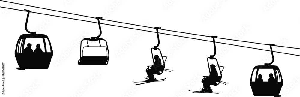 Fototapeta Ski lift and gondola silhouette scene, winter sports transportation illustration