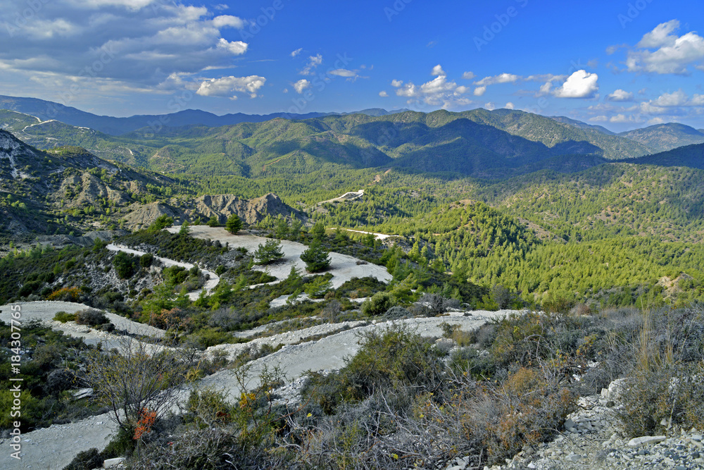 Fototapeta Panoramic view of the Troodos Mountains in Cyprus