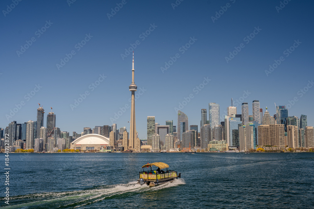 Fototapeta Water taxi boat approaching the CN Tower skyline in Toronto