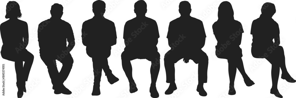 Fototapeta Seated people silhouettes collection, diverse men and women sitting poses, front