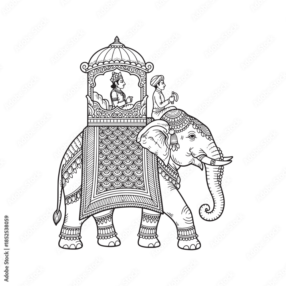 Fototapeta Traditional Indian decorated elephant with king in howdah