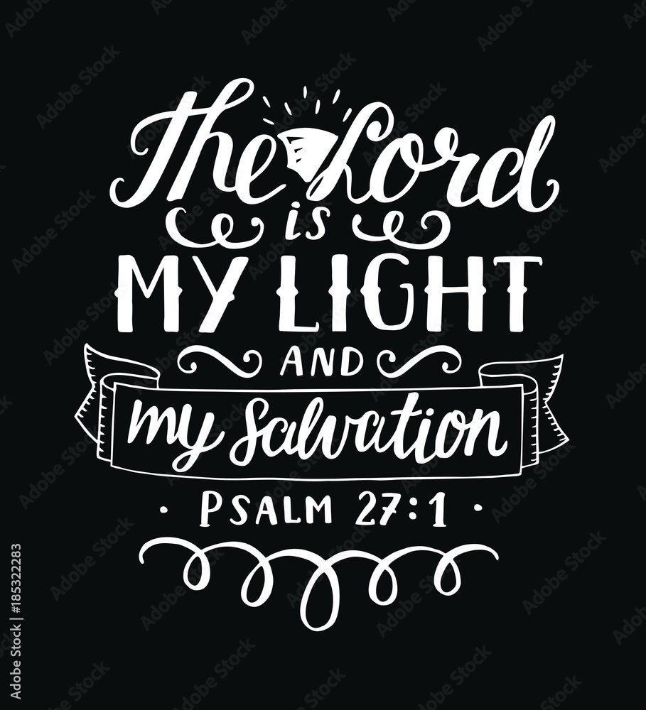 Fototapeta Hand lettering The Lord is my light and my salvation on black background