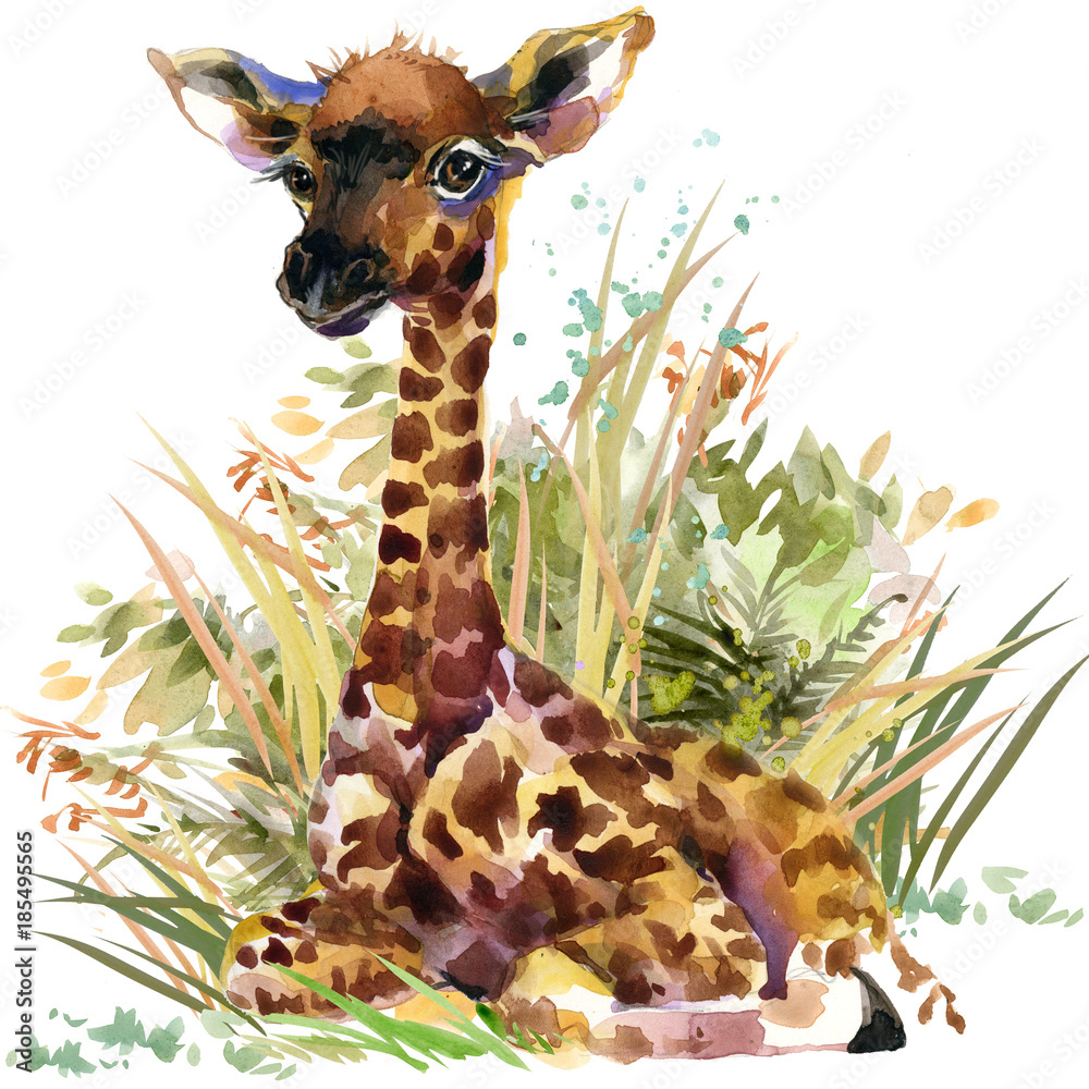 Fototapeta giraffe cub. wild animals watercolor illustration