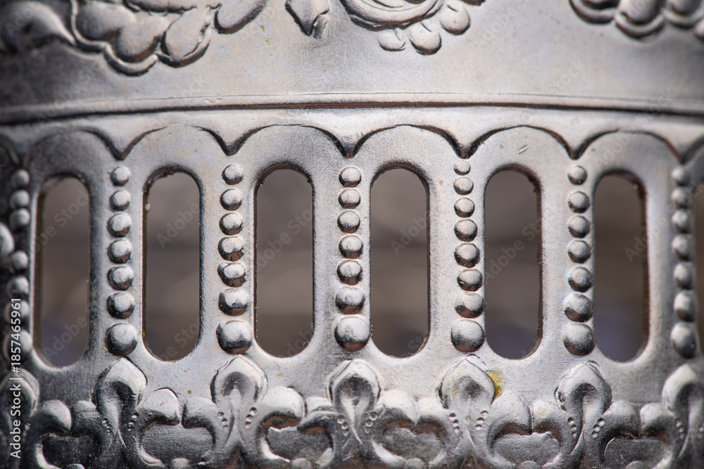 Fototapeta Close-up of details of a Soviet-era tea glass holder with handle featuring a flo