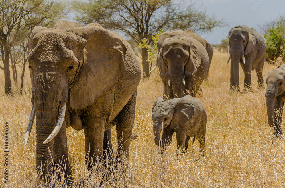 Fototapeta Elephant Family in Tarangire National Park, Tanzania