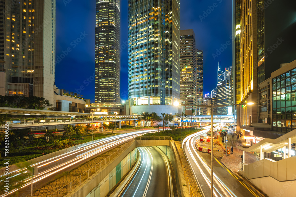 Fototapeta night view of Central district of Hong Kong island in Hongkong, China