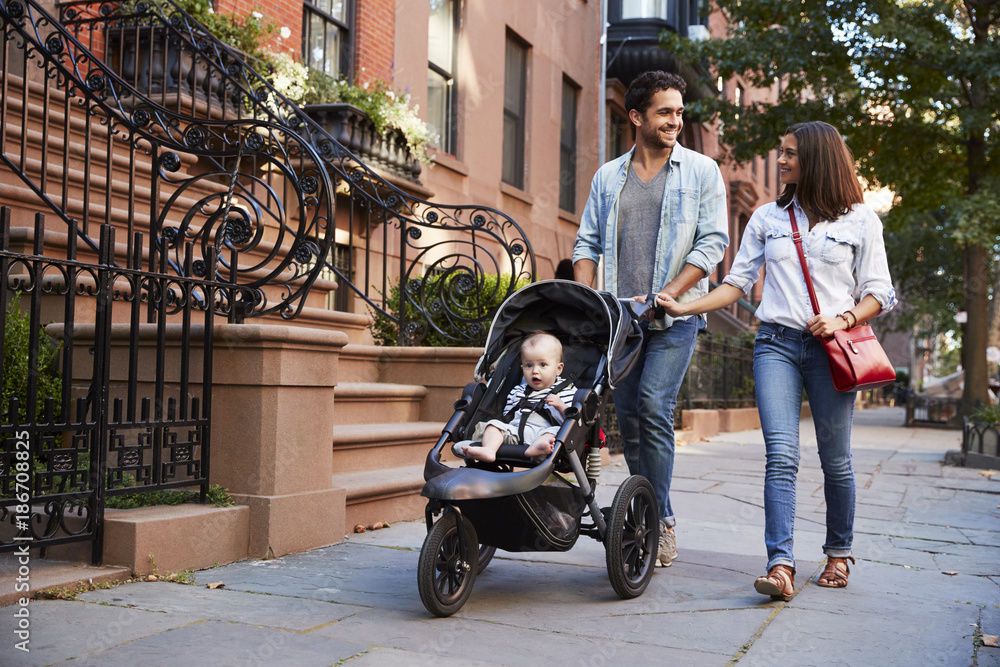 Fototapeta Family taking a walk down the street, close up