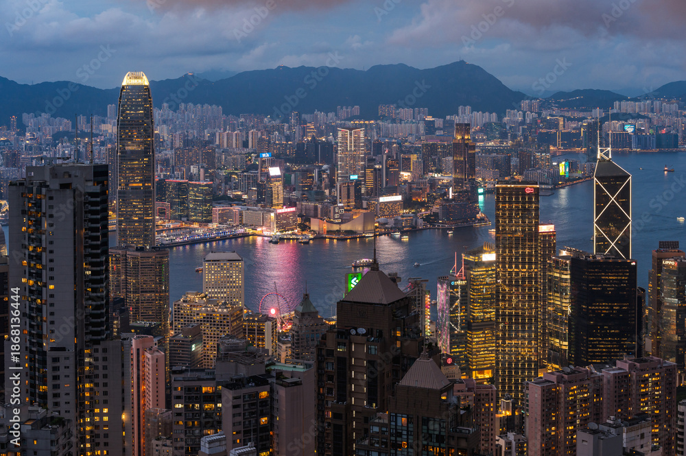 Fototapeta View of Hong Kong and Kowloon from Victoria peak