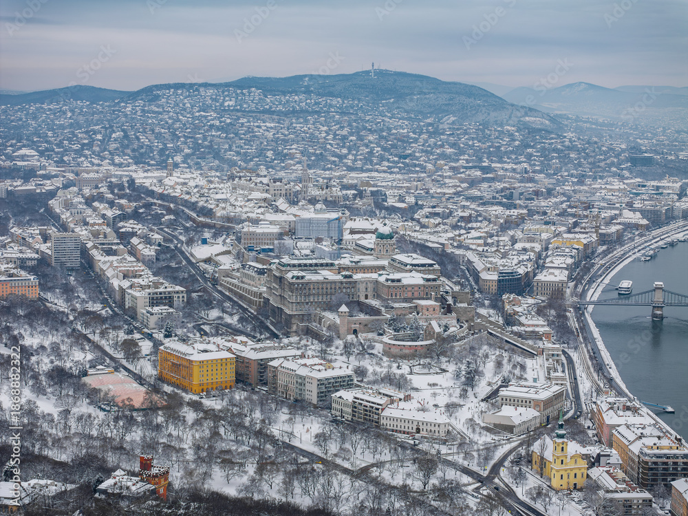 Fototapeta Snowy Budapest Landscape, Buda Castle, Budapest Hungary