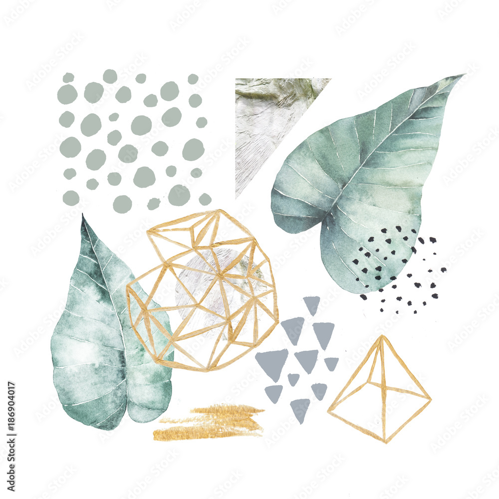 Fototapeta Hand drawn illustration with watercolor and marble elements
