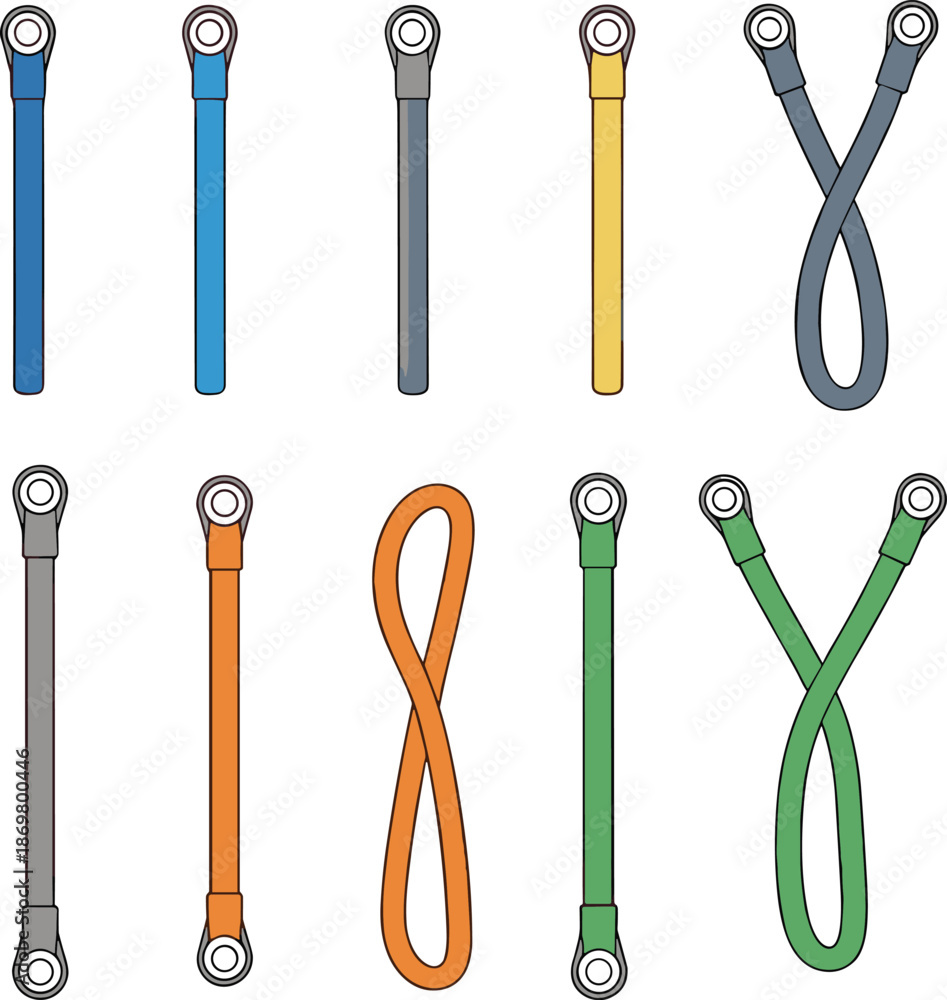 Fototapeta Cable sling icon set, looped wire configurations with metal eyelets, colorful ve