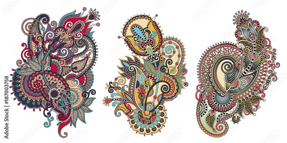 Fototapeta paisley flower pattern in ethnic style, indian decorative floral