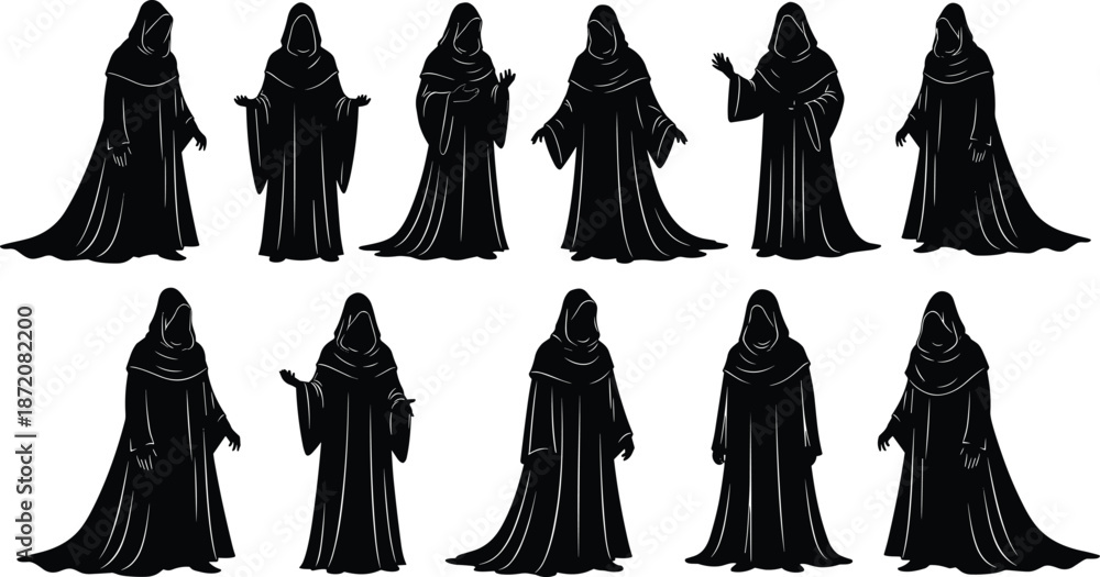 Fototapeta hooded, figure, silhouette, robe, cloak, mysterious, pose, gesture, black, white